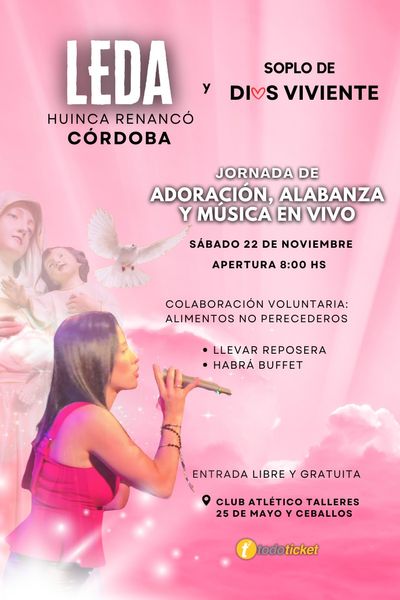 Te invitamos a vivir una día de fe, música y esperanza en un encuentro especial de oración y alabanza junto a Leda.